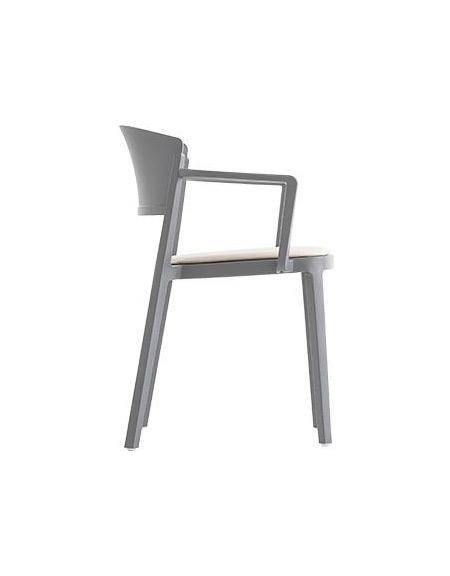Stackable armchair with techno-polymer frame. Suitable for exterior use.