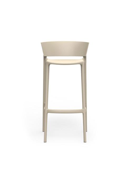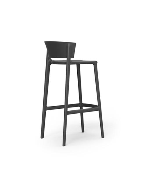 Barstool made from polypropylene and reinforced with fiberglass manufactured by gas injection. Stackable. Available in various colors. Suitable for indoor and outdoor use.