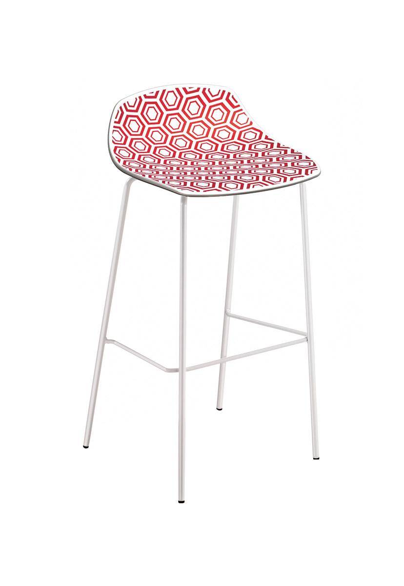 Bar stool with metal frame and techno-polymer backless shell. Available in different heights.