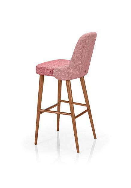 Barstool made from solid beech wood with stylish curved shapes. Brushed stainless steel footrest. Fully upholstered.
