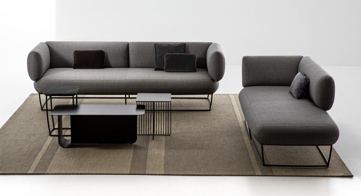 Sofa with metal frame, available in a range of finishes. Available in various different elements allowing you to create comfortable compositions depending on the space available. Fully upholstered in fabric, leather or faux leather.