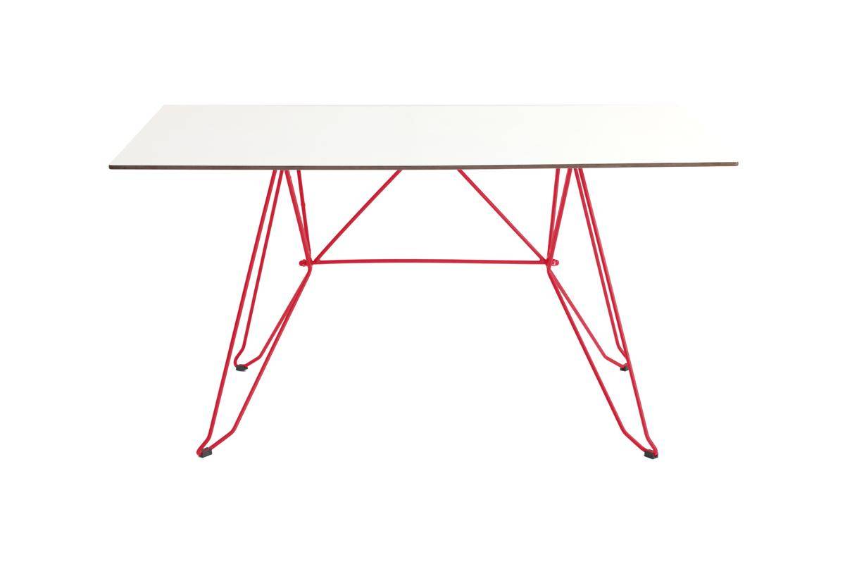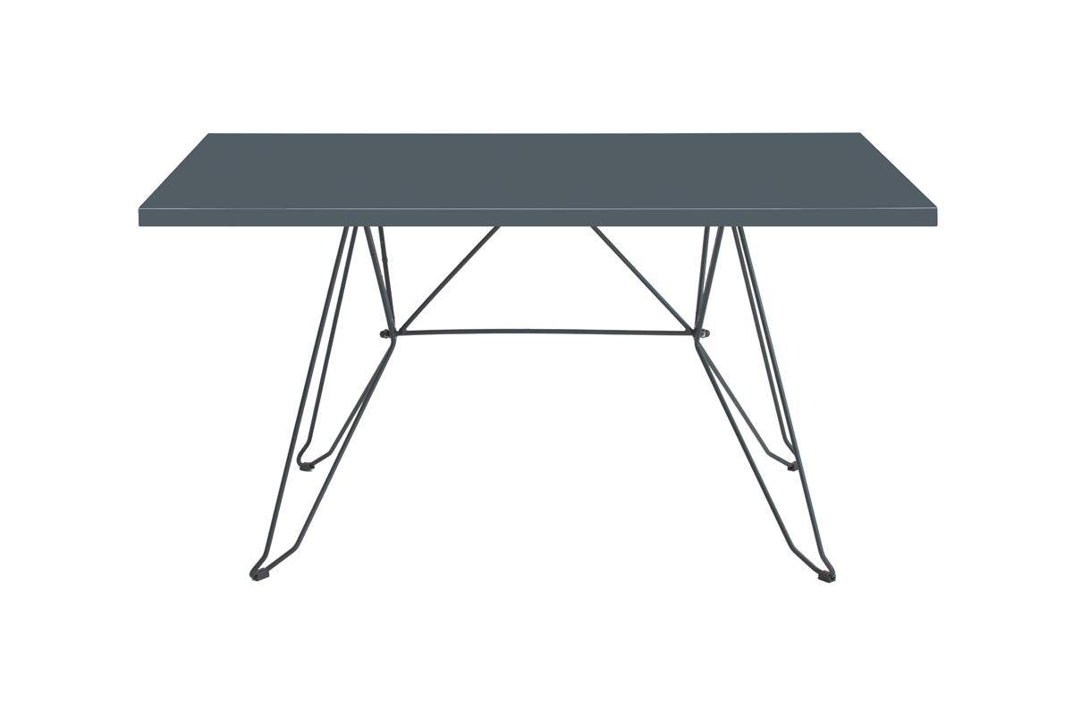 Galvanised steel rod frame dining table with metal top.