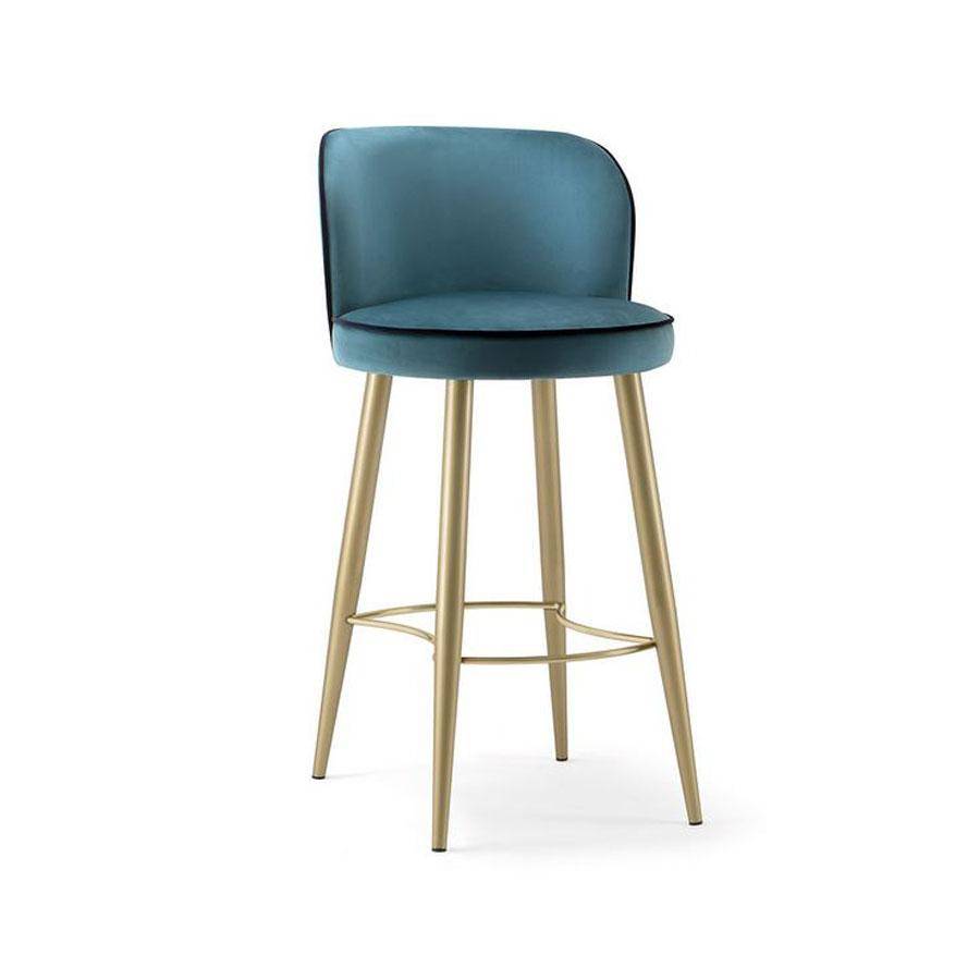 Barstool, metal legs available in a range of finishes. Fully upholstered in fabric, leather or faux leather.