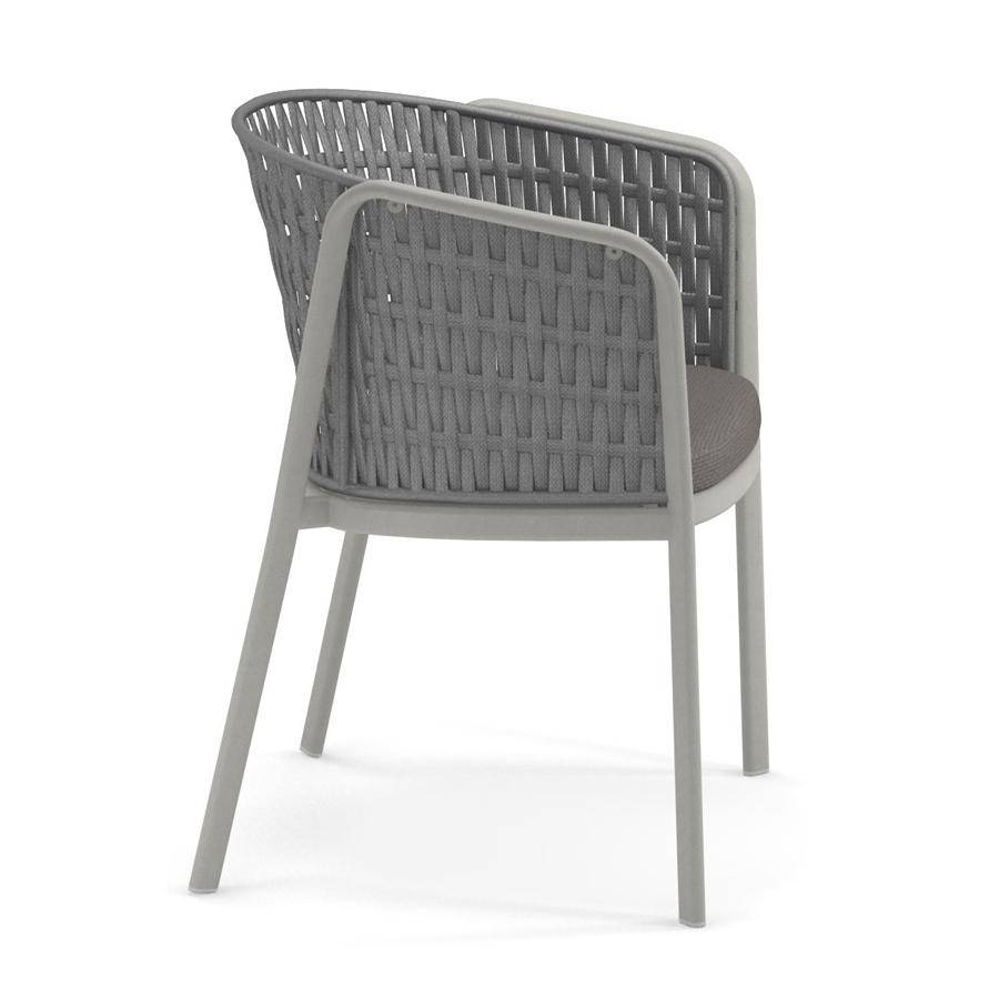 Armchair with tubular aluminium frame, synthetic rope detail and cushioned seat. Suitable for exterior use.