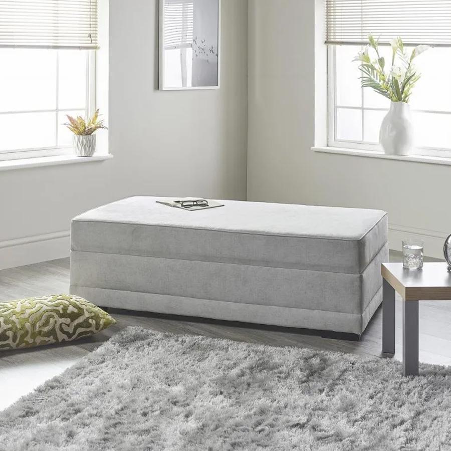 Double box bed which can be used as a seat, pouf or bed. Fully upholstered in fabric leather or faux leather. High quality bi-fold contract mechanisms suitable for heavy use environments.