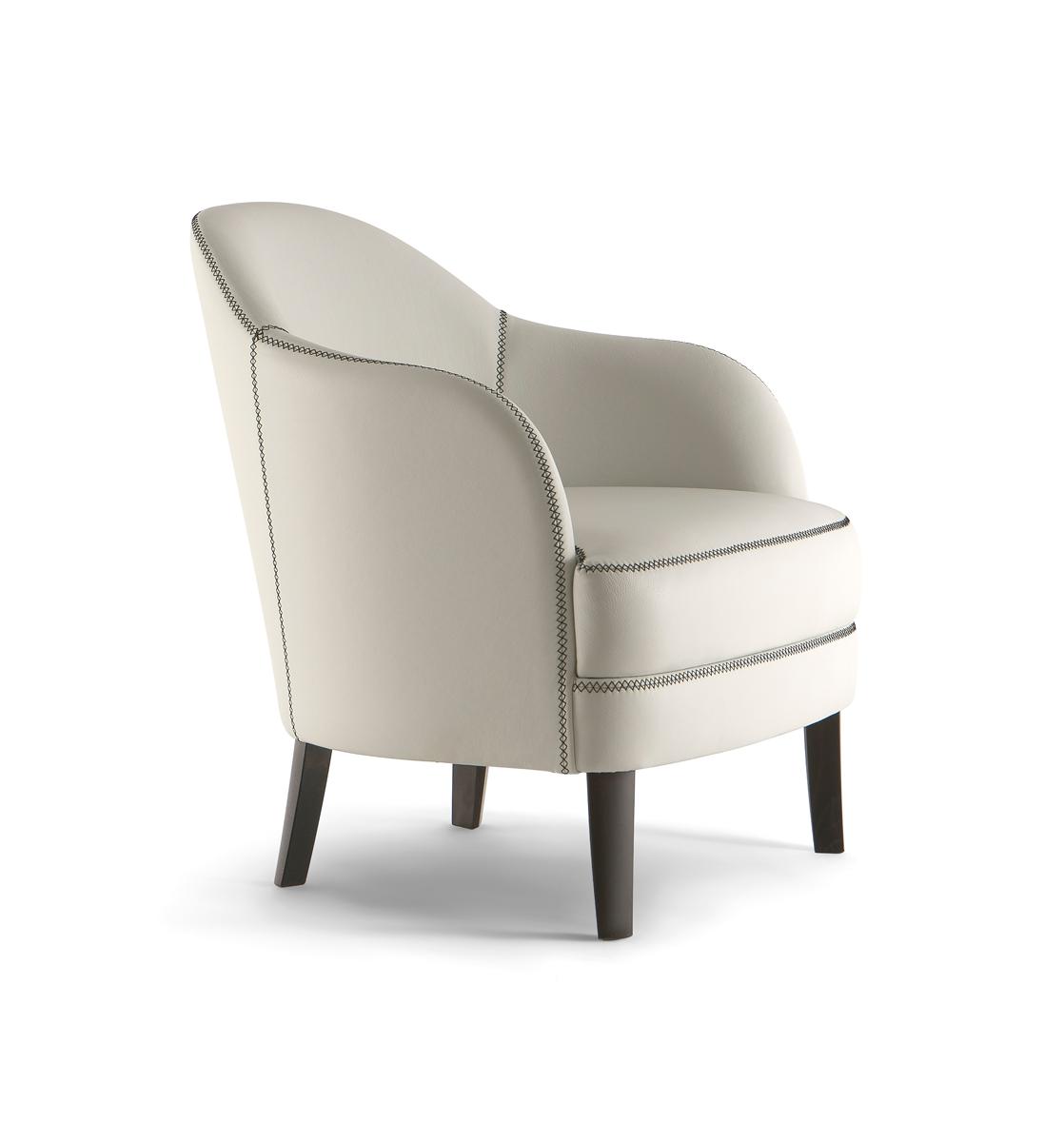 Lounge armchair, solid timber frame, fully upholstered in fabric, leather or faux leather. Optional contrasting colour stitch detail.