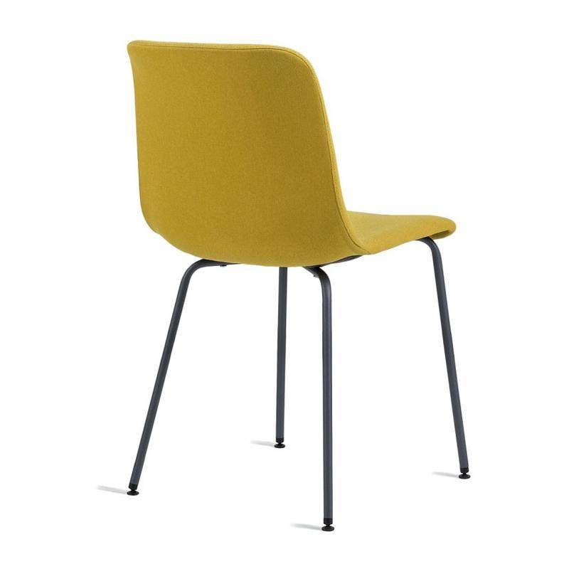 Chair with metal tube frame and fully upholstered seat and back.