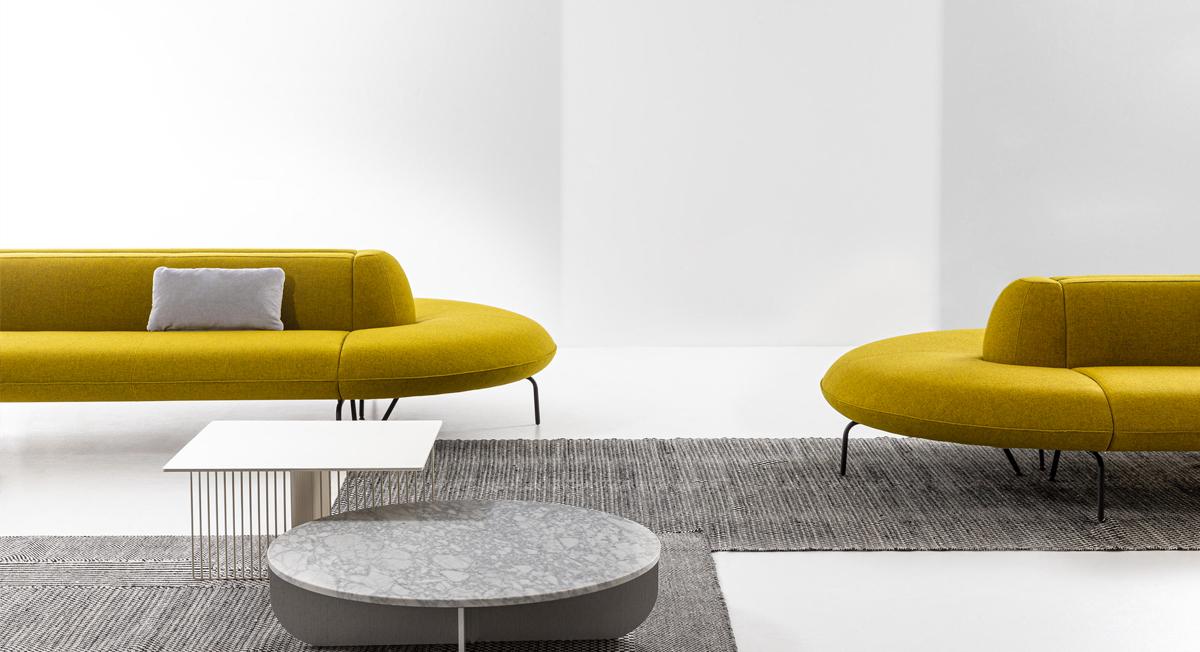 Modular system with metal frame. 38 elements which allow great composition freedom to create comfortable spaces in any size. Available with extras such as USB ports and coat hooks. Fully upholstered in fabric, leather or faux leather.