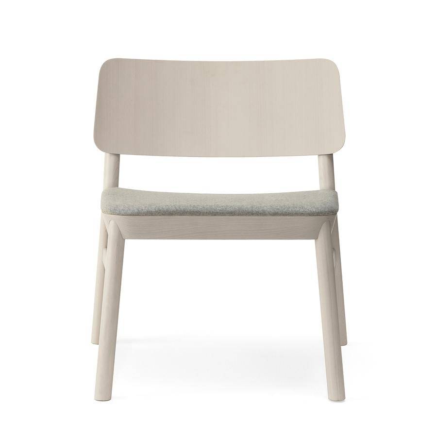 Lounge chair with solid wood frame, available in stained beech or lacquered finishes.