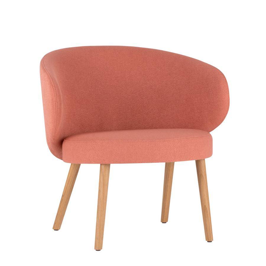 Lounge chair with ash wood frame and fully upholstered seat and back.