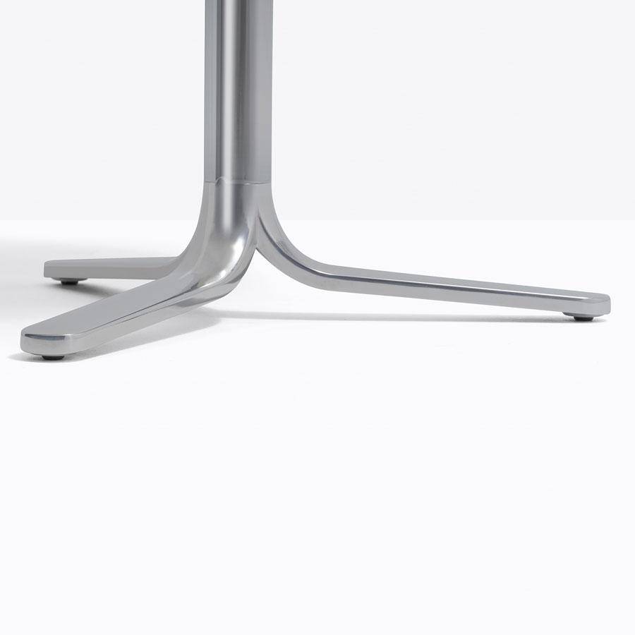 Fluxo dining table base, die-cast aluminium base with three legs. Available in polished or powder coated aluminium and titanium. Max top size – Ø700mm or 600x600mm