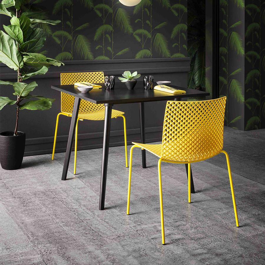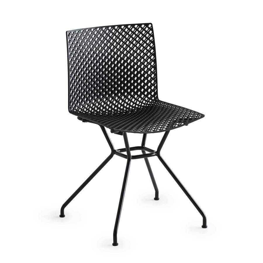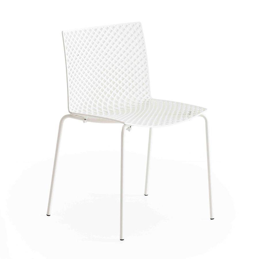 Side chair with metal sled frame and techno-polymer shell.