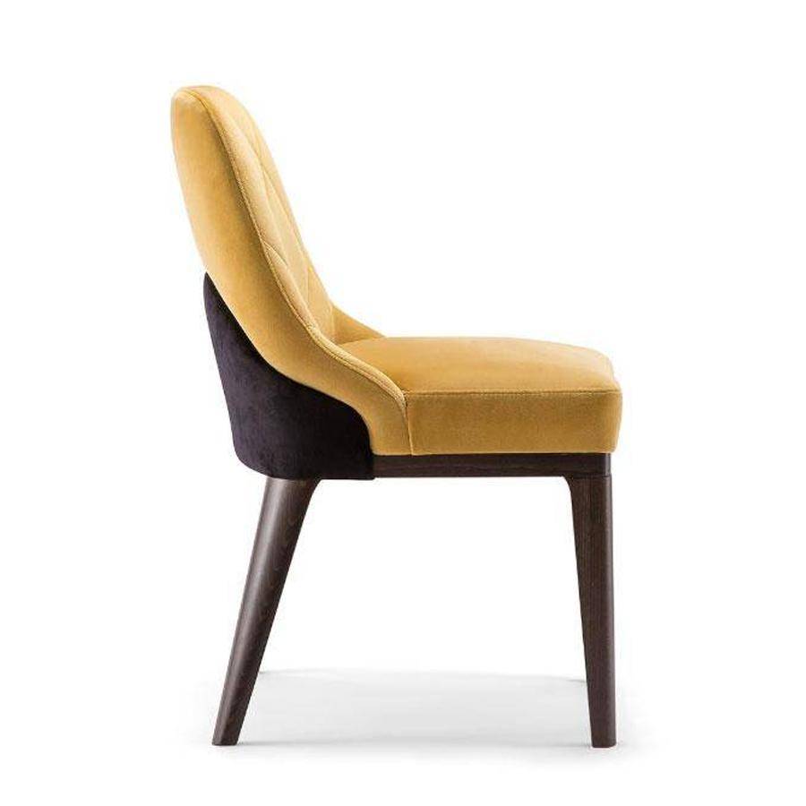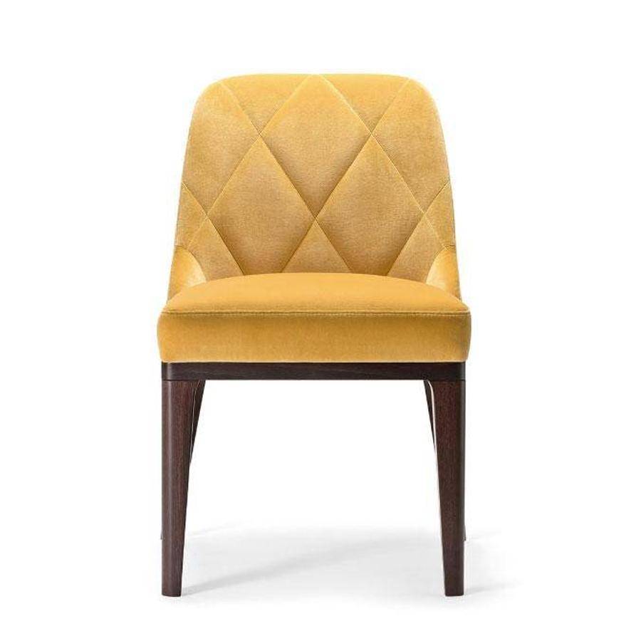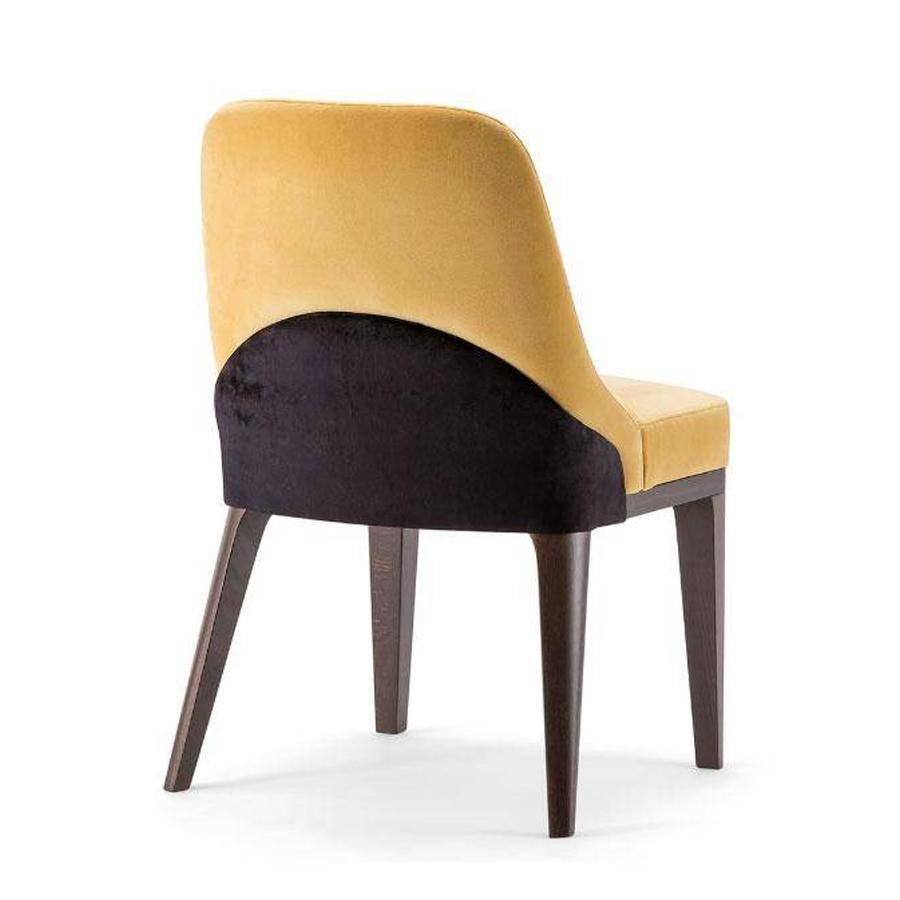 Chair with solid wooden frame. Fully upholstered in fabric, leather or faux leather.