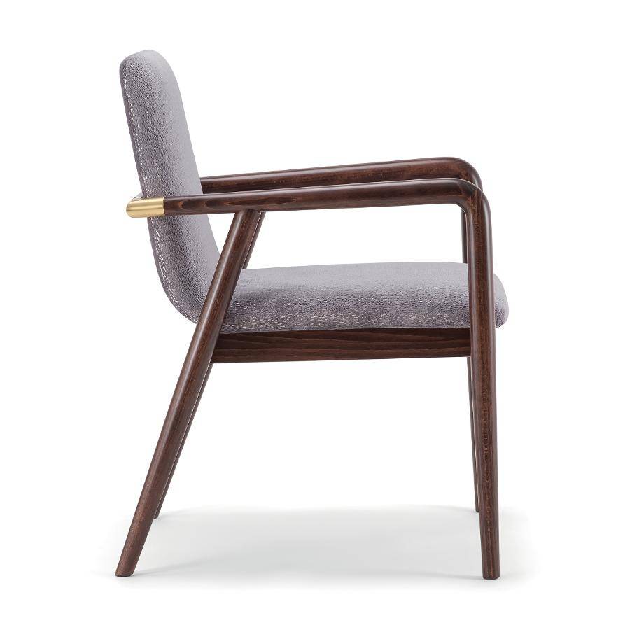 Armchair with solid wood frame, available in a range of finishes with stylish arm detail. Upholstered seat and back in fabric, leather or faux leather.