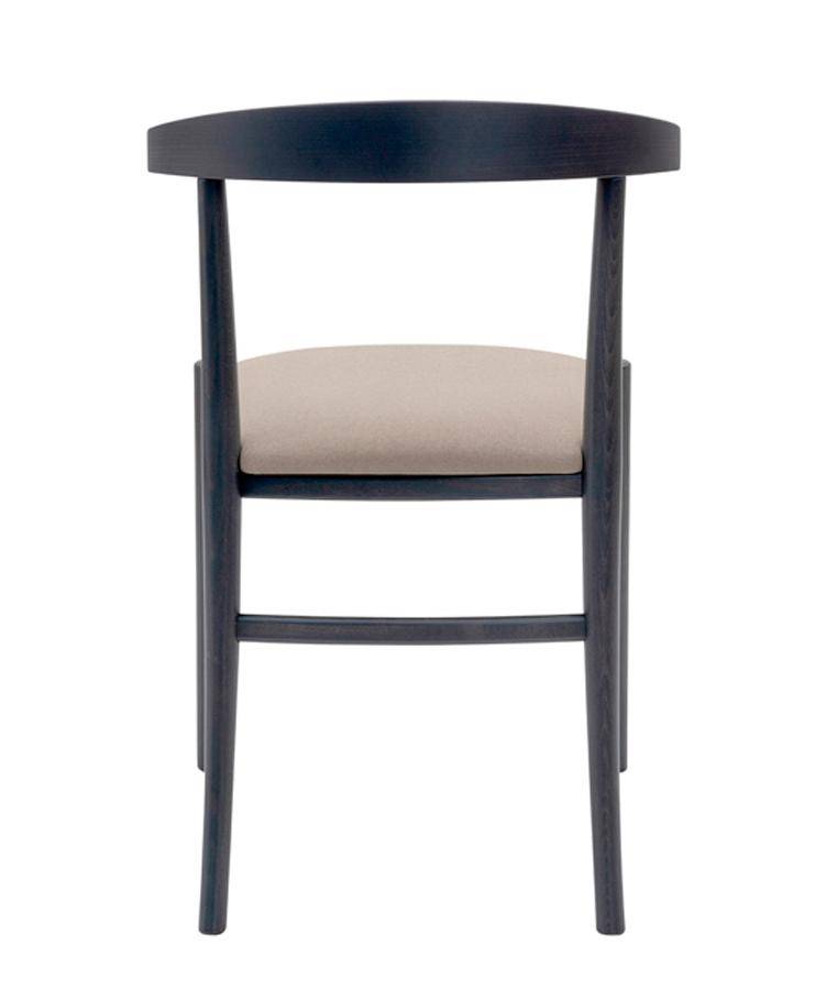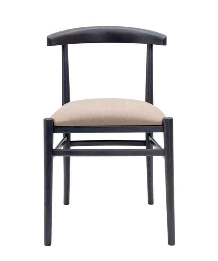Chair with nostalgic yet modern design, with solid beech wood frame and upholstered seat.