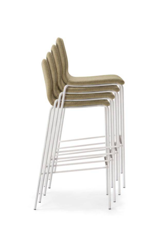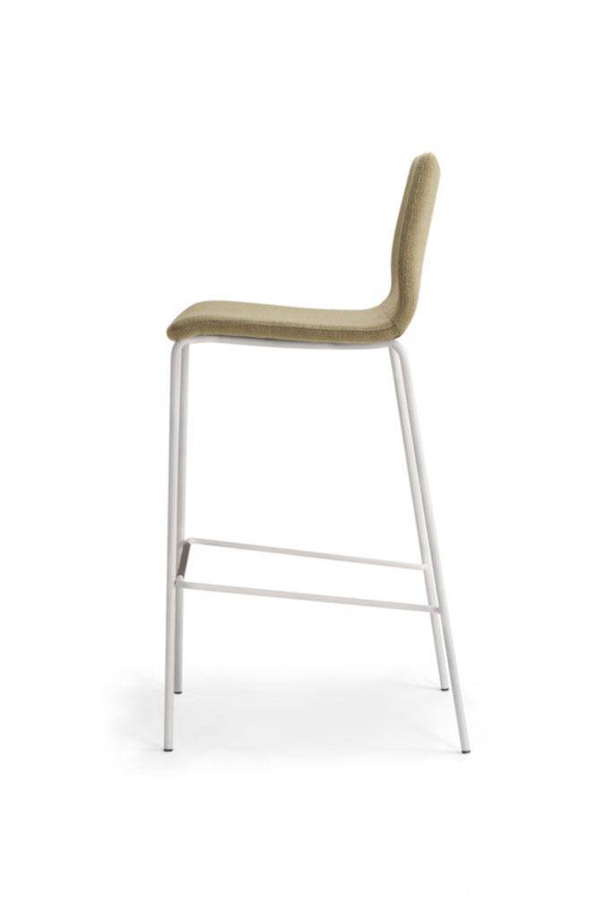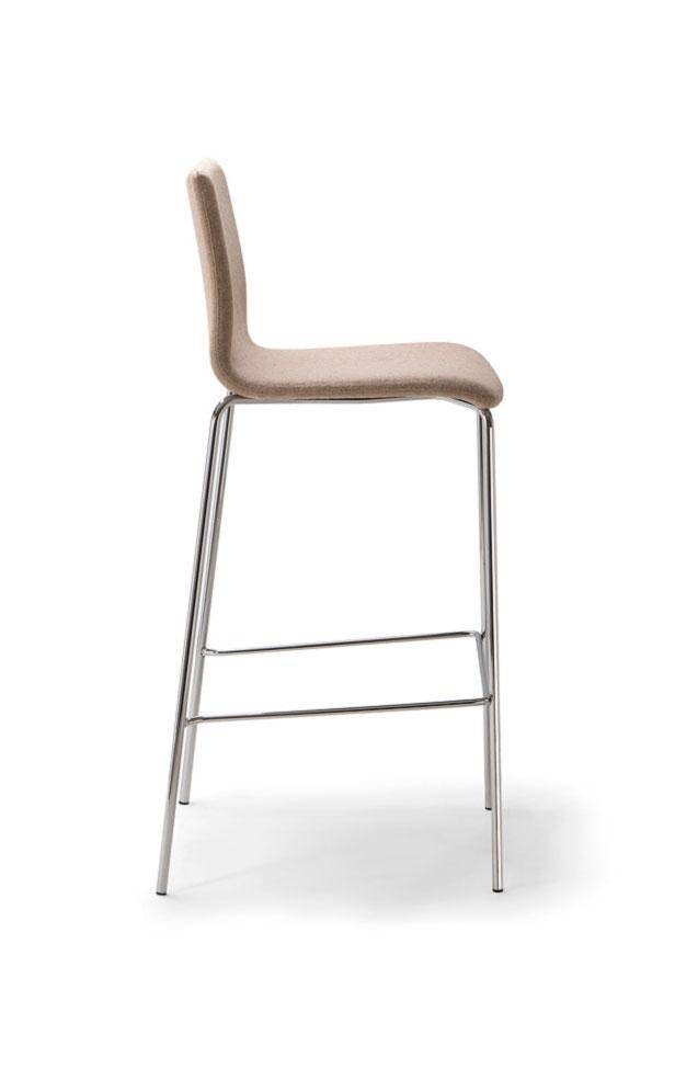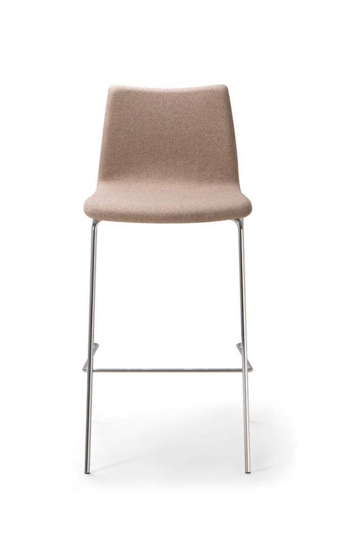 Bar stool with steel 4 legged frame. Fully upholstered shell with metal sub frame.