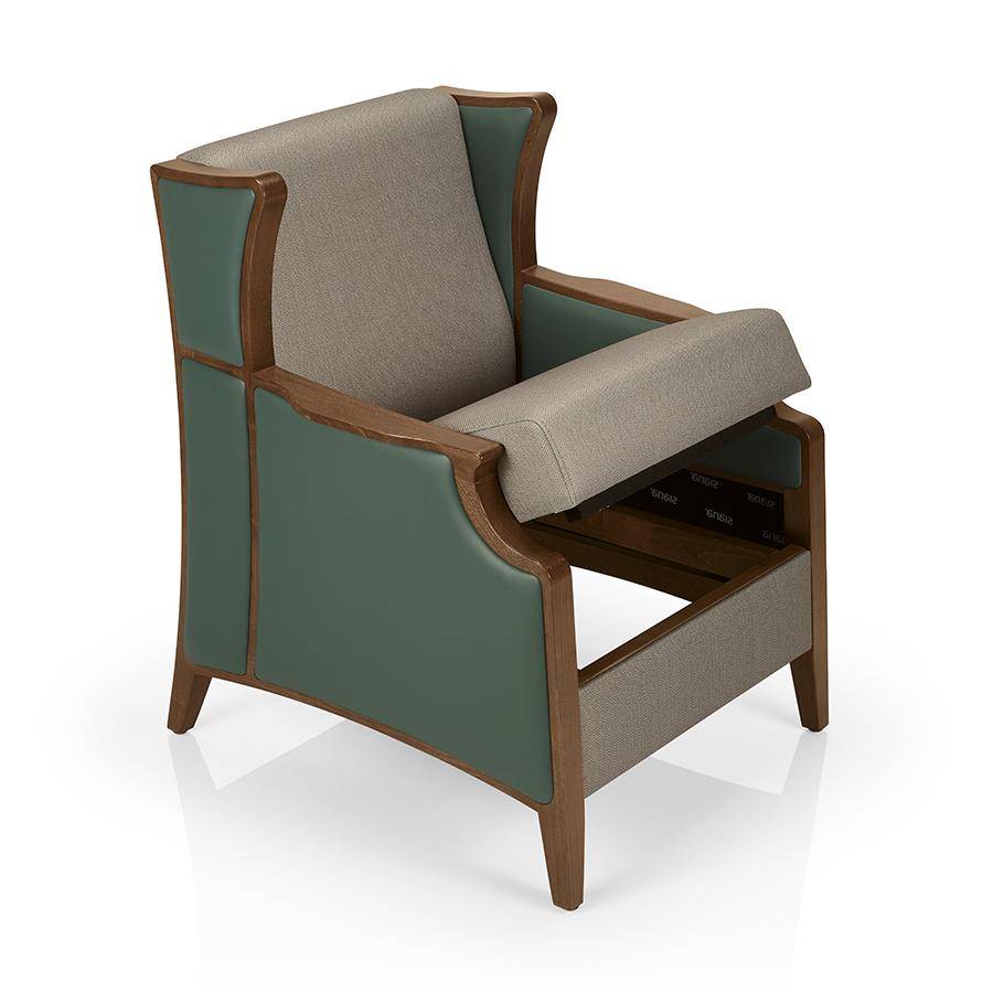 Lounge armchair with solid beech wood frame. Fully upholstered. Suitable for healthcare environments.