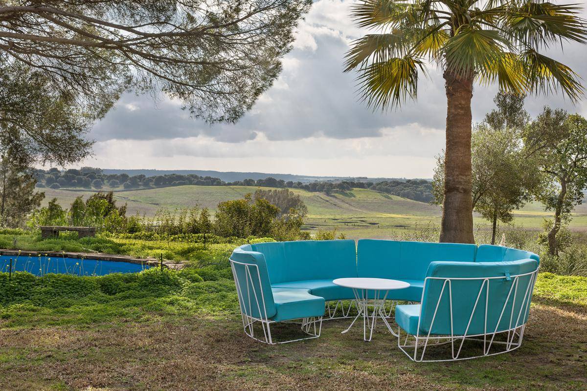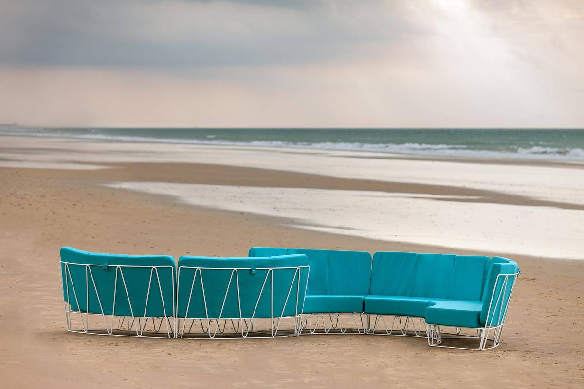 Galvanised steel rod frame modular seating range, available in a range of finishes.