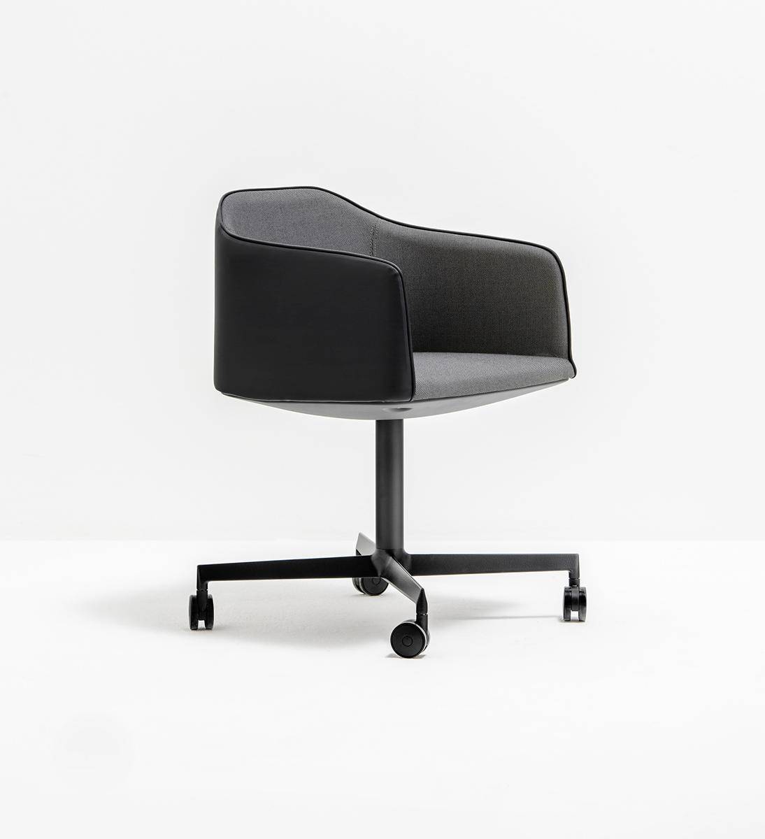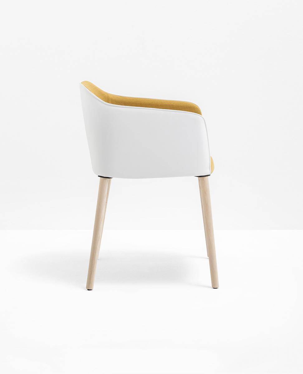 Armchair with different leg options in polished, chromed, powder coated metal or timber finish, fully upholstered in fabric, faux leather or leather. Option to have the sides and back upholstered in contrasting finish.