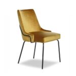 Side chair, flute style upholstered with stylish seams on back in fabric, leather or faux leather. Metal frame available in chrome or powder coated finish.