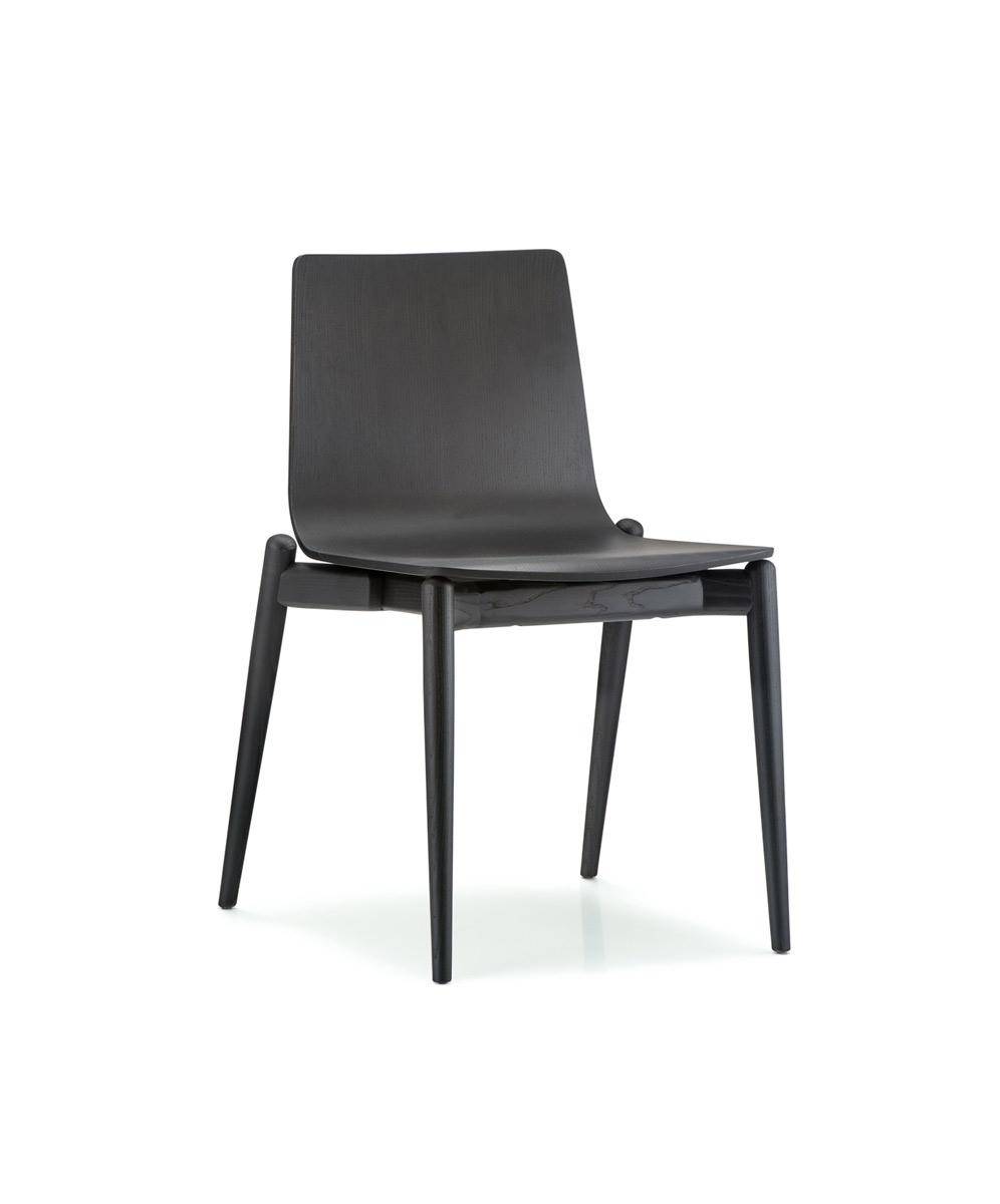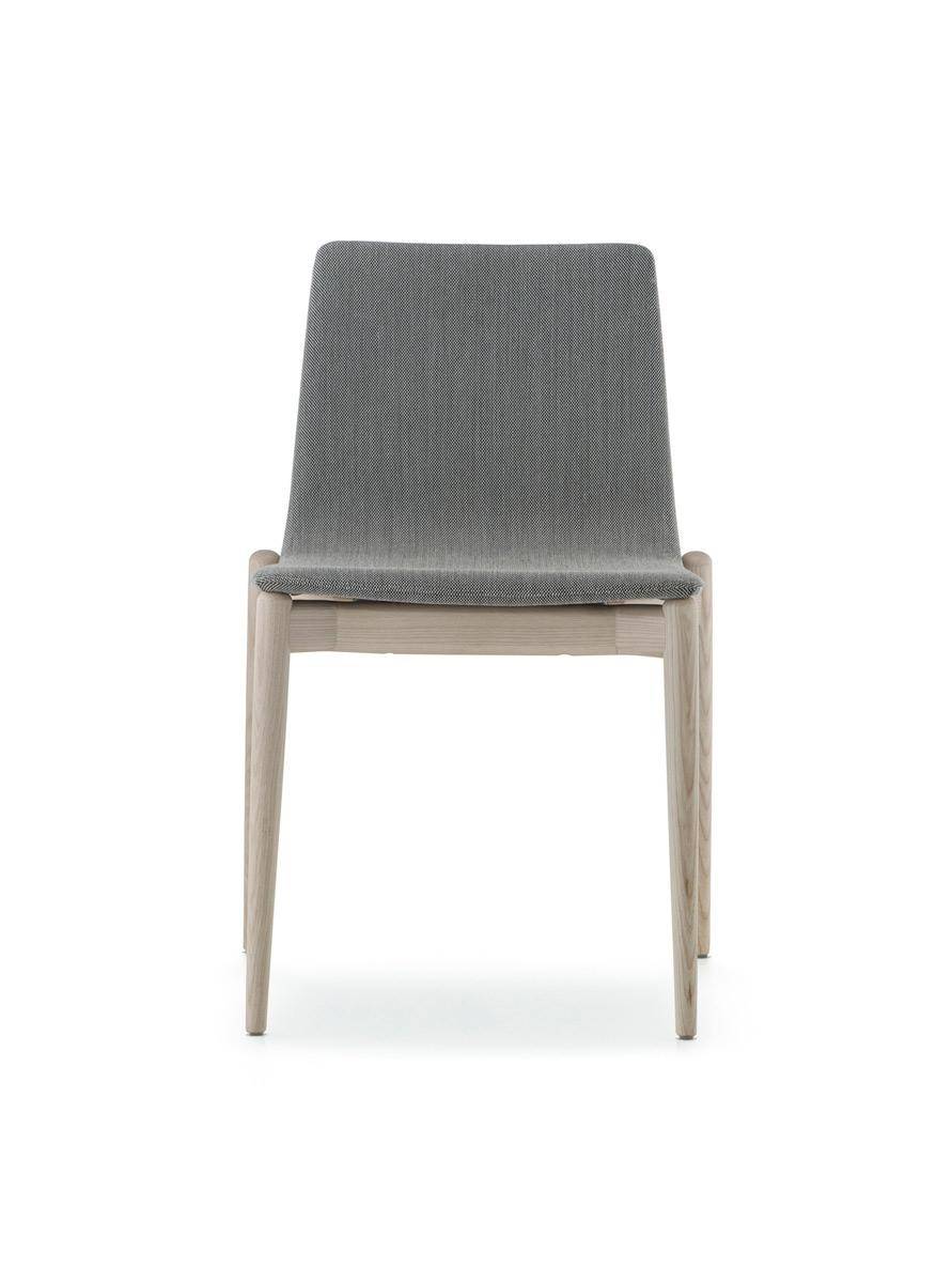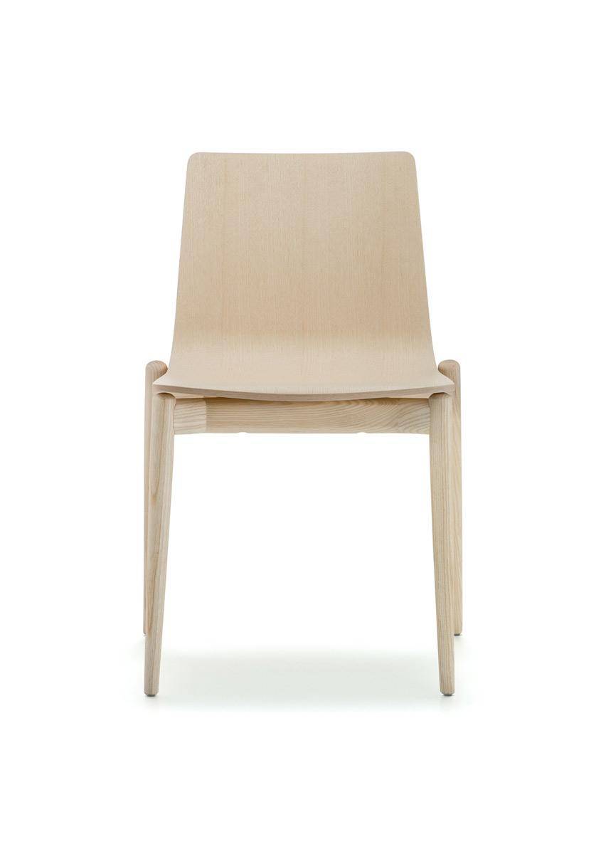 Chair, solid ash timber frame. Available with plywood shell or upholstered in fabric or leather.