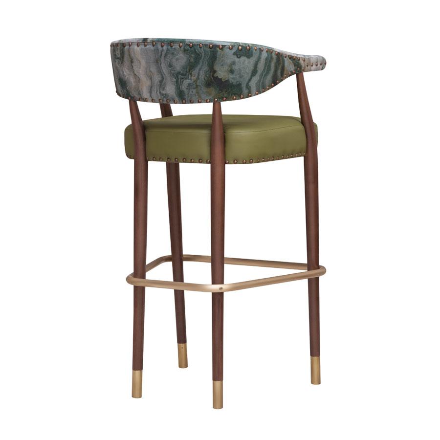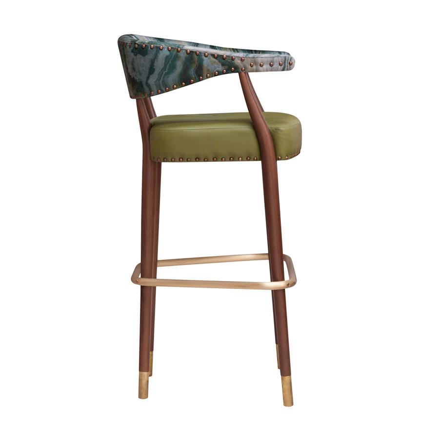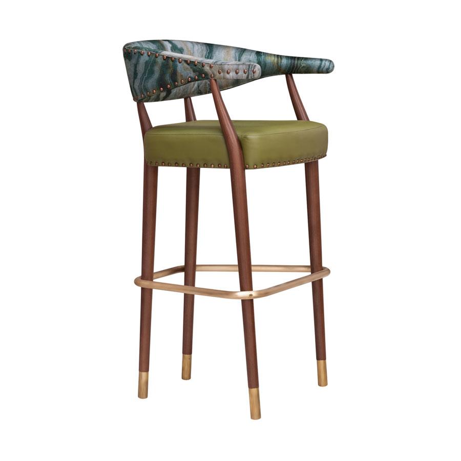 This curvaceous bar stool has a solid beech frame and upholstered seat and back. Available in different fabric types, with optional stud details or metal capped legs for an added touch of elegance.