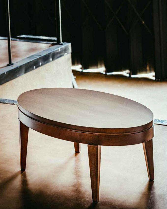 Oval timber coffee table, solid timber frame