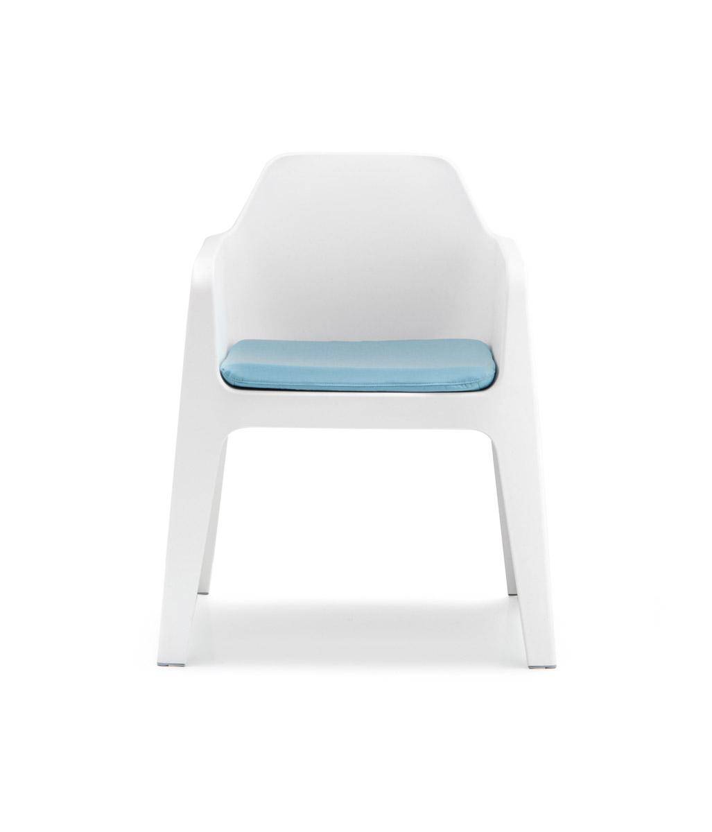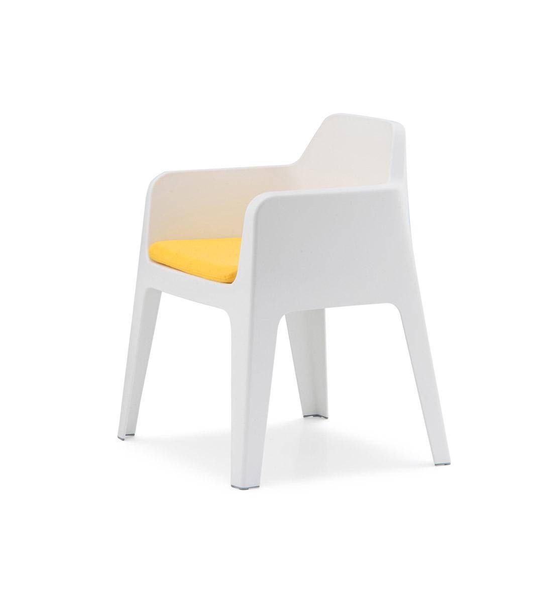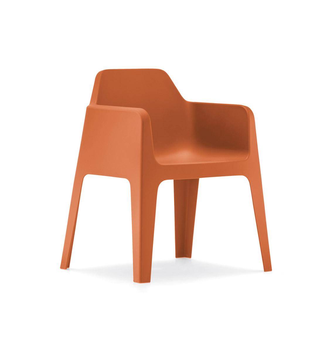 Stacking chair in polypropylene, can be stacked up to 12 high and can be used outdoors.