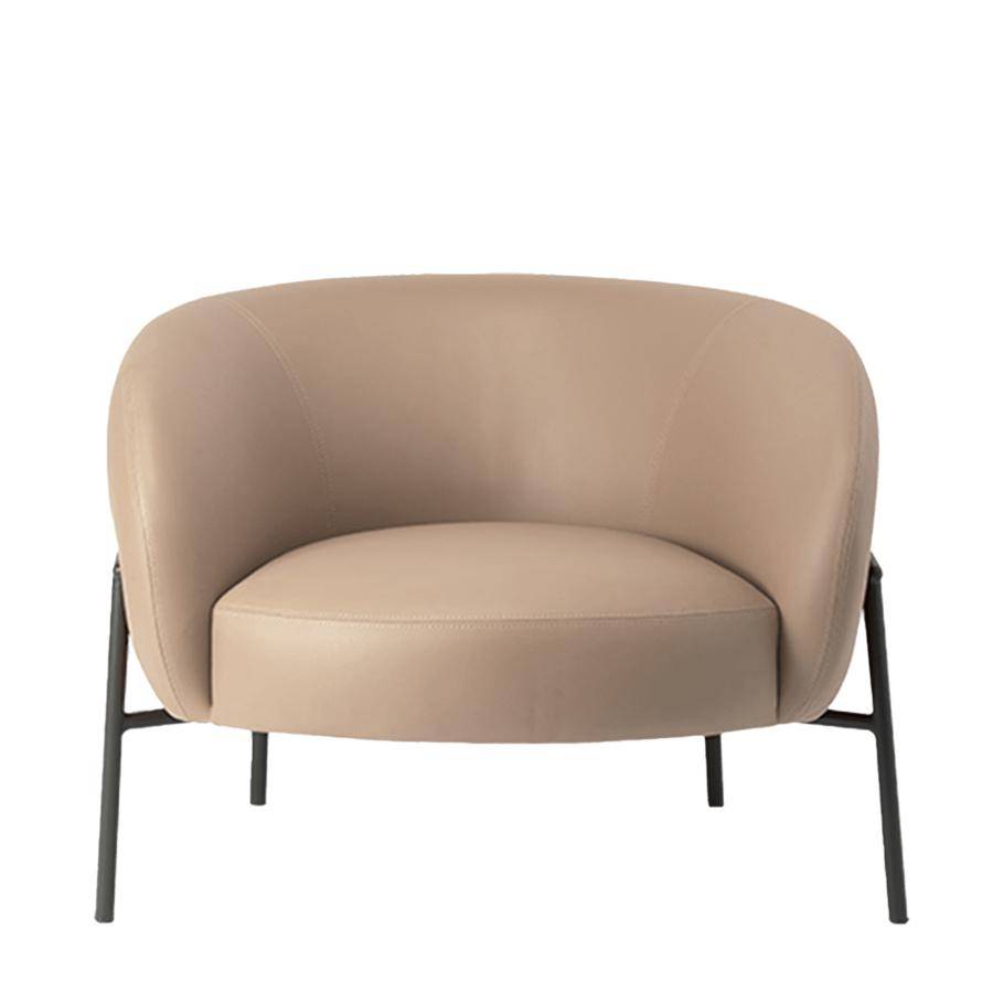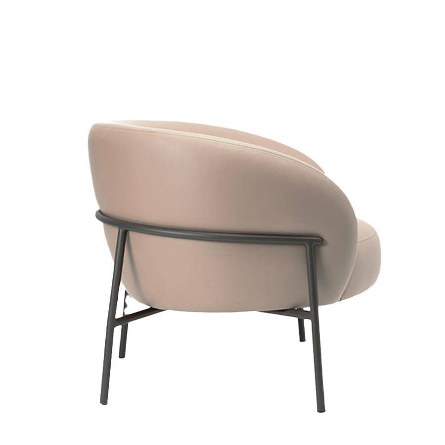 Lounge armchair combining simplicity and comfort. Powder coated metal frame and fully upholstered.