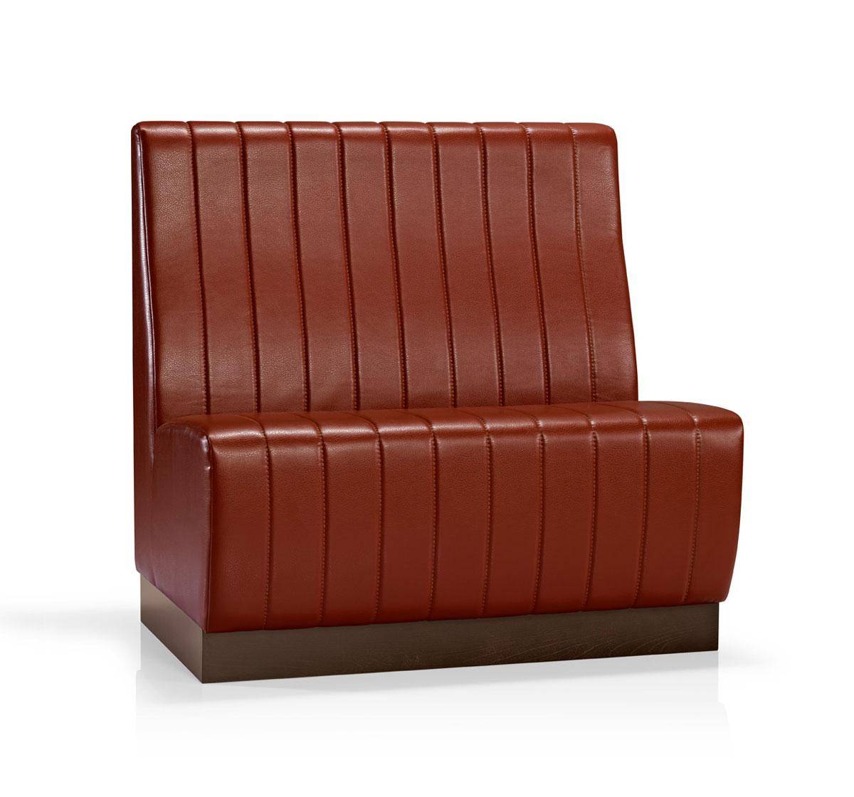 Two seat modular bench component with beech wood plinth. Fully upholstered with vertical stitching. Width is extendable.