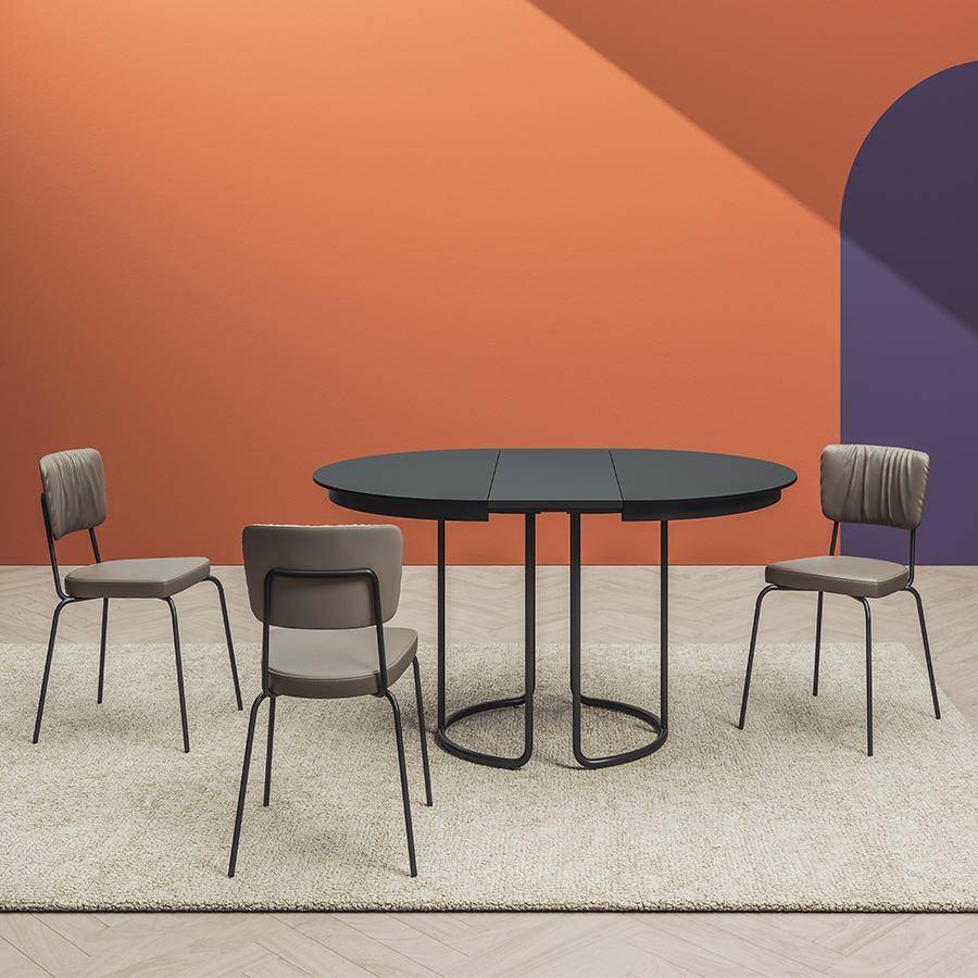 Stackable side chair that gives a feel of lightness and comfort whilst being fashionable. Seat and back upholstered with a painted metal frame.