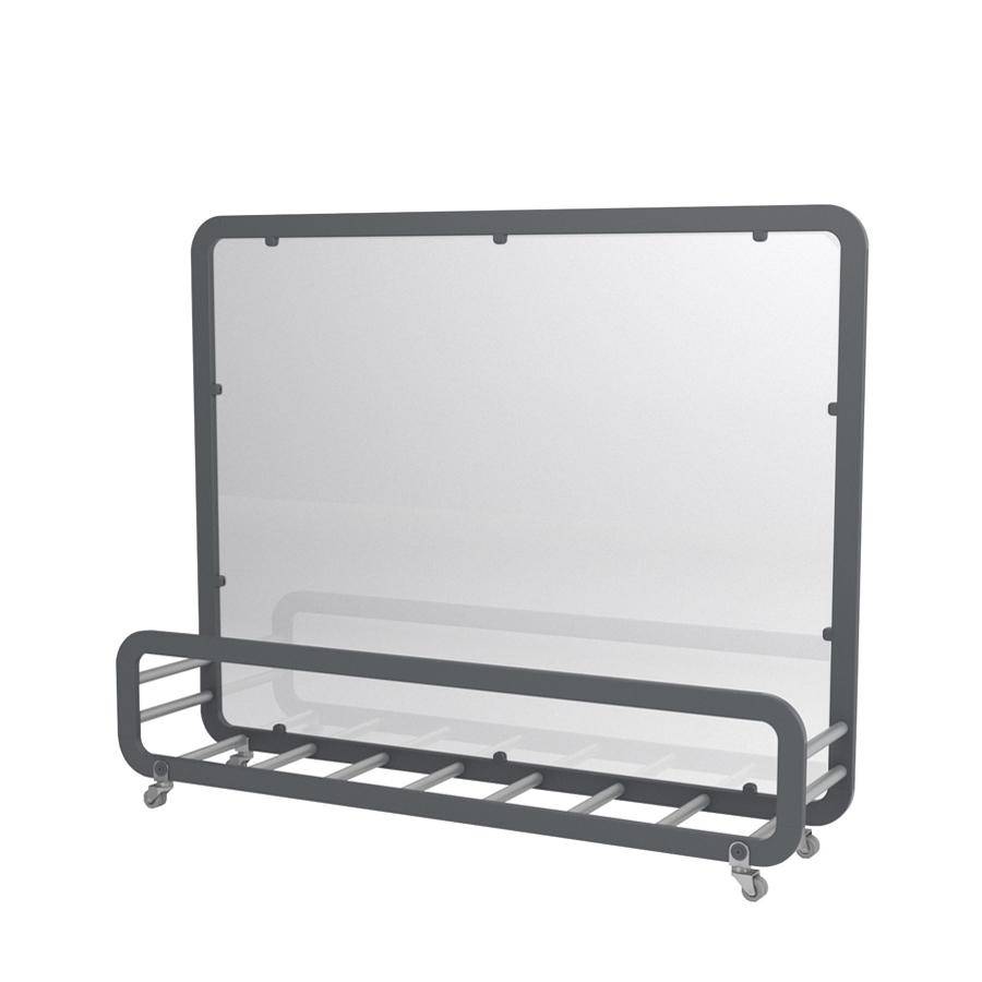 Transparent divider module with 4 wheels and space for flowerpot. Made from lacquered and anodized aluminium with stainless steel hardware. Only suitable for stable and flat surfaces.