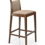 Barstool with solid beech wood frame and metal footrest. Fully upholstered with padded seat and backrest.