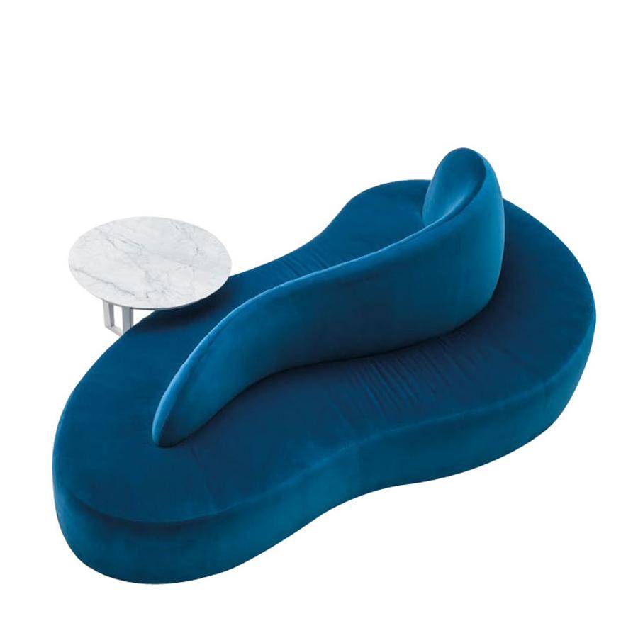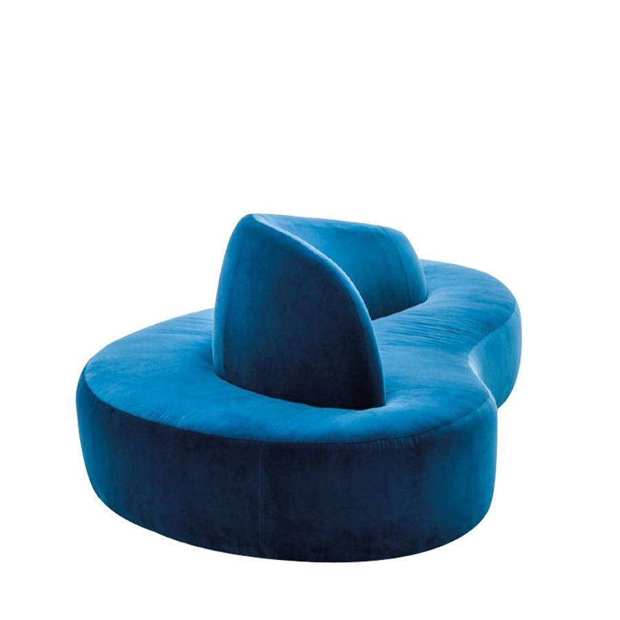 Modular sofa with central element in wave shaped style. Ideal as a feature in any commercial space. Upholstered in fabric, leather or faux leather.