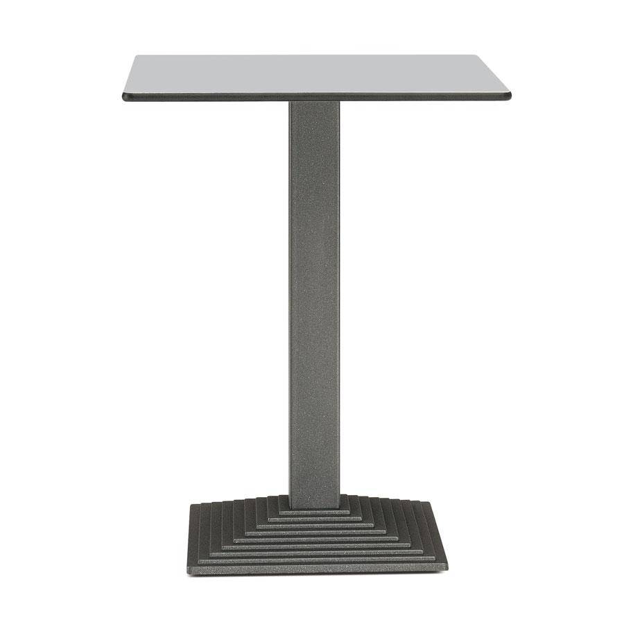 Step square dining table base, steel powder coated finish. Column available in powder coated, chrome or satirized stainless steel. Max top size 900 x 900mm.