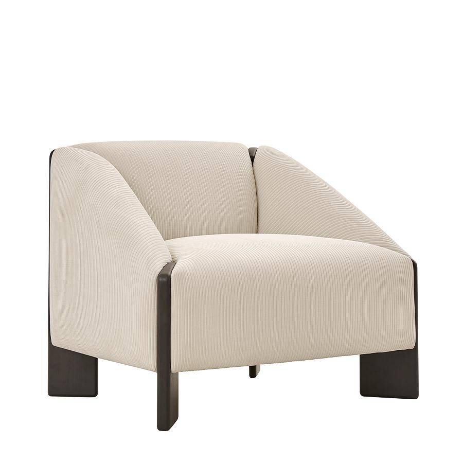 Lounge chair, fully upholstered in fabric, leather or faux leather.