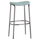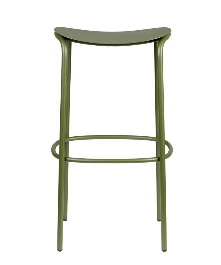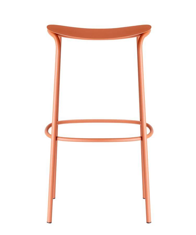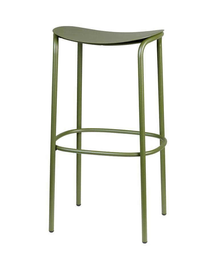 Stool with 4-leg frame in a zinc and polyester powder coated tubular steel. Suitable for indoor and outdoor use.