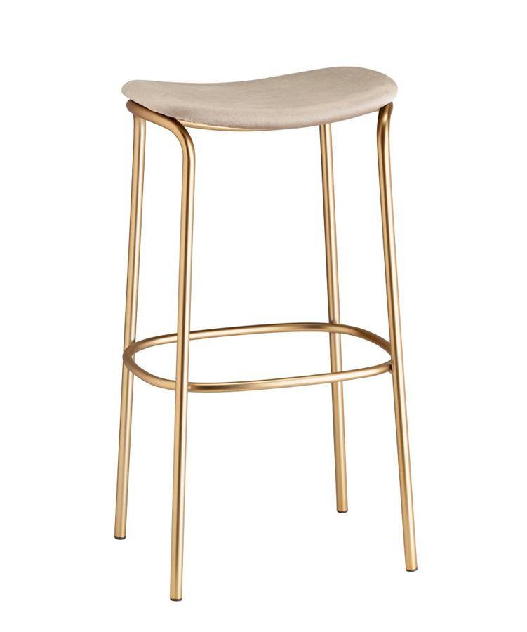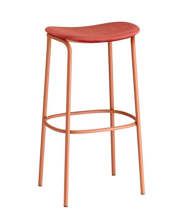 Stool with 4-leg frame powder coated tubular steel and upholstered seat.