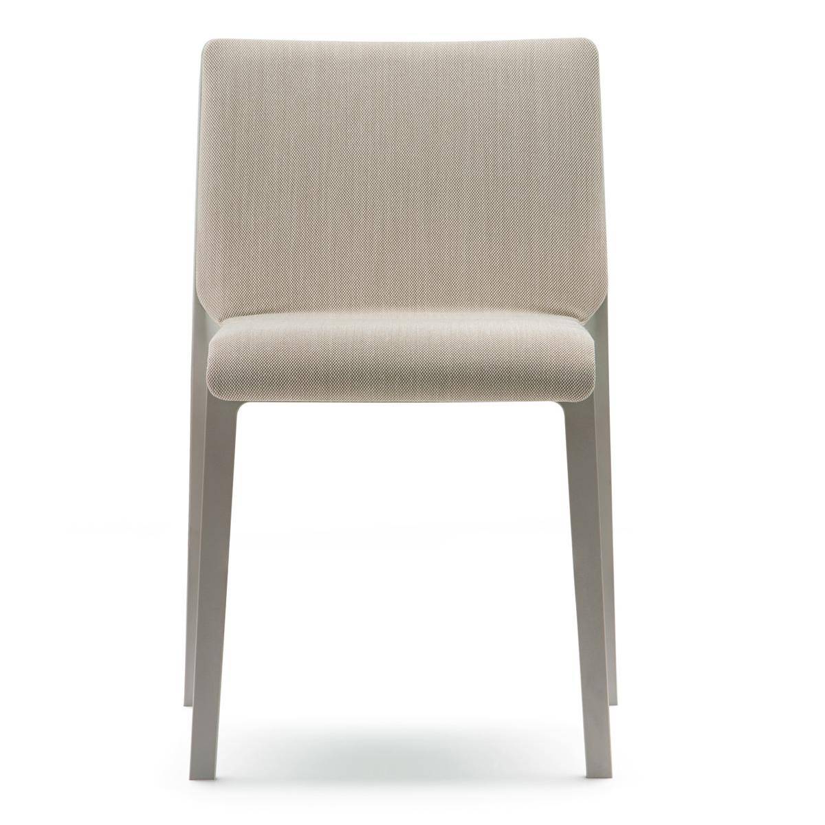 Stackable chair, made of injection gas moulding polypropylene reinforced by fiberglass. Upholstered front panel, only available in select fabrics from Touchsoft cat.
