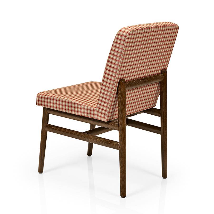 Chair with solid beech wood frame and stylish wooden back feature. Fully upholstered.